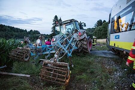 Ein Traktor sei auf einem unbeschrankten Bahnübergang durch den herannahenden Zug getroffen worden. Im Zug sei nur eine geringe Anzahl Fahrgäste, ein Zuginsasse und der Fahrer des landwirtschaftlichen Nutzfahrzeuges seinen leicht verletzt.