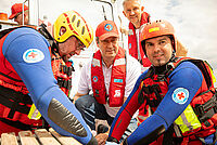 Bei einem Besuch an der Wachstation in Tutzing am Starnberger See konnte sich Ministerpräsident Dr. Markus Söder von der Leistungsfähigkeit der Wasserwacht-Bayern überzeugen.